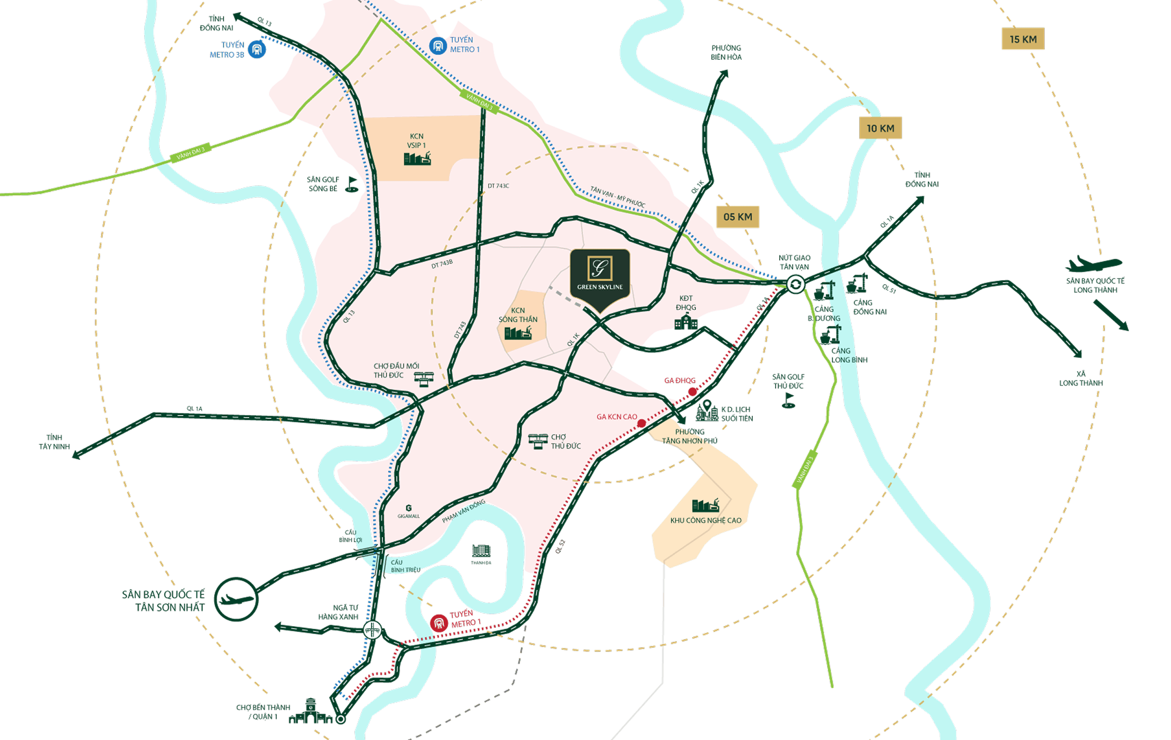 Từ đây, mọi mạch giao thông – thương mại – dịch chuyển đều hội tụ, mở ra tiềm năng siêu vùng đột phá và đưa Green Skyline trở thành tâm điểm hấp dẫn của siêu đô thị TPHCM trong tương lai.