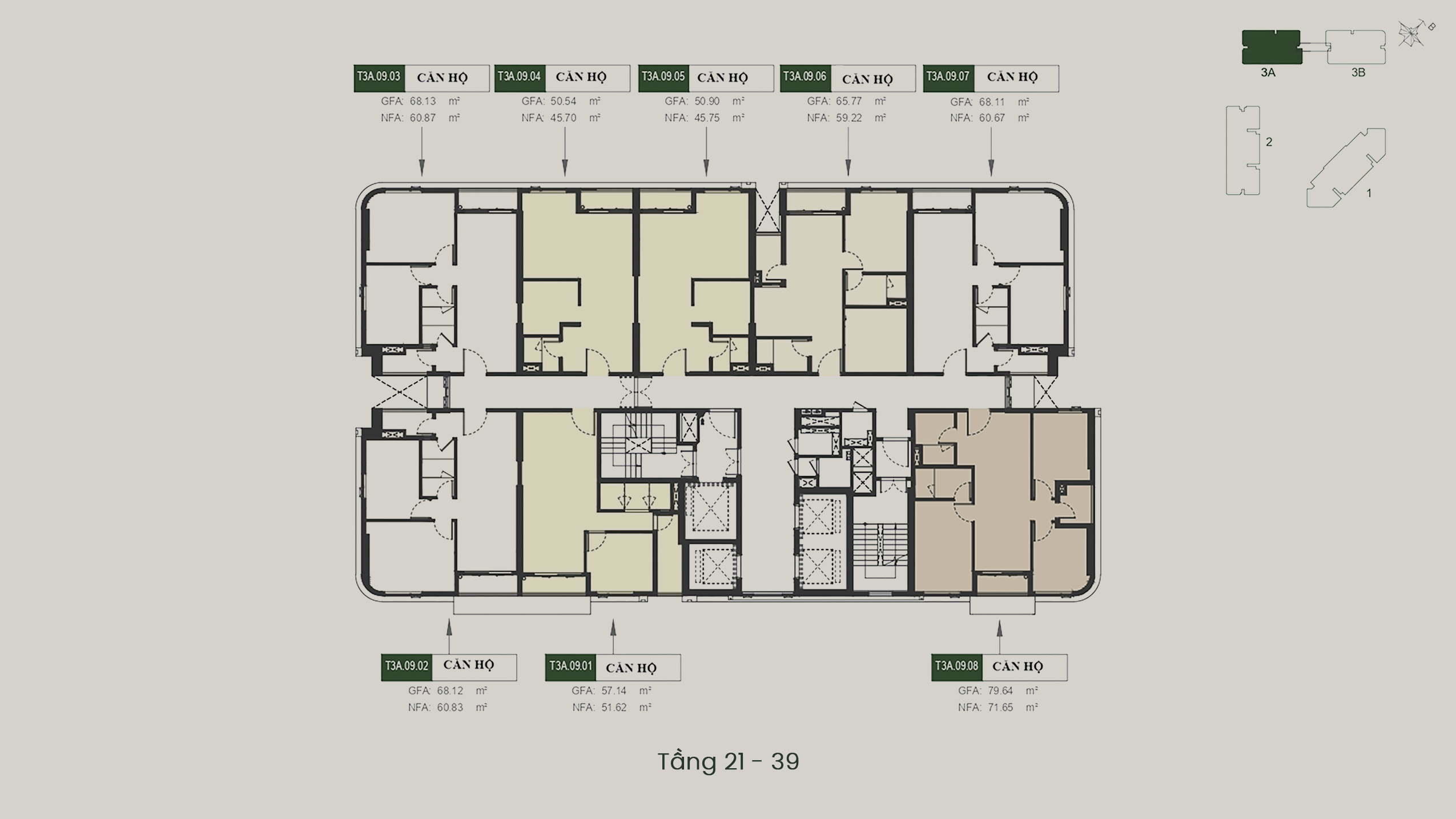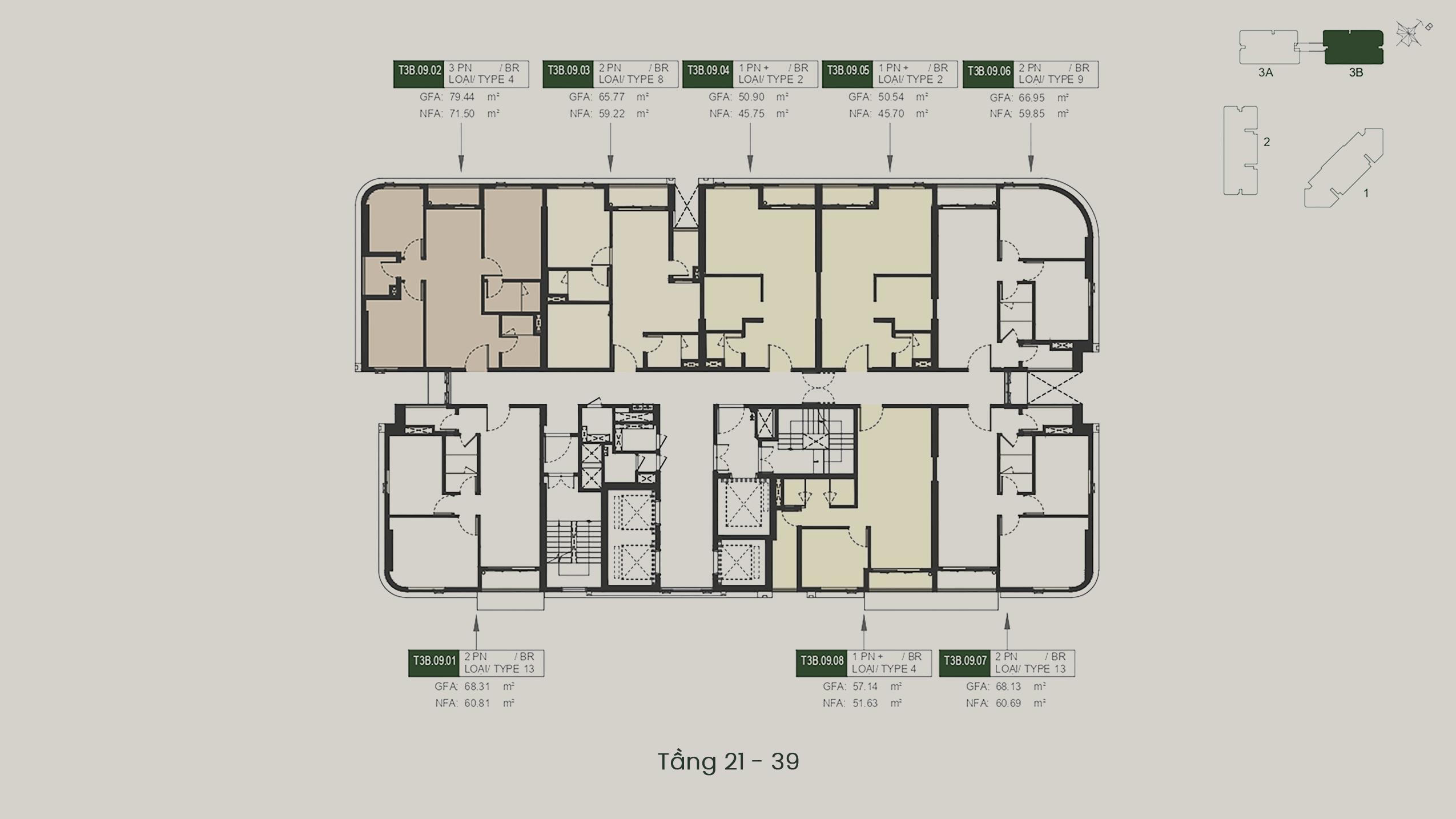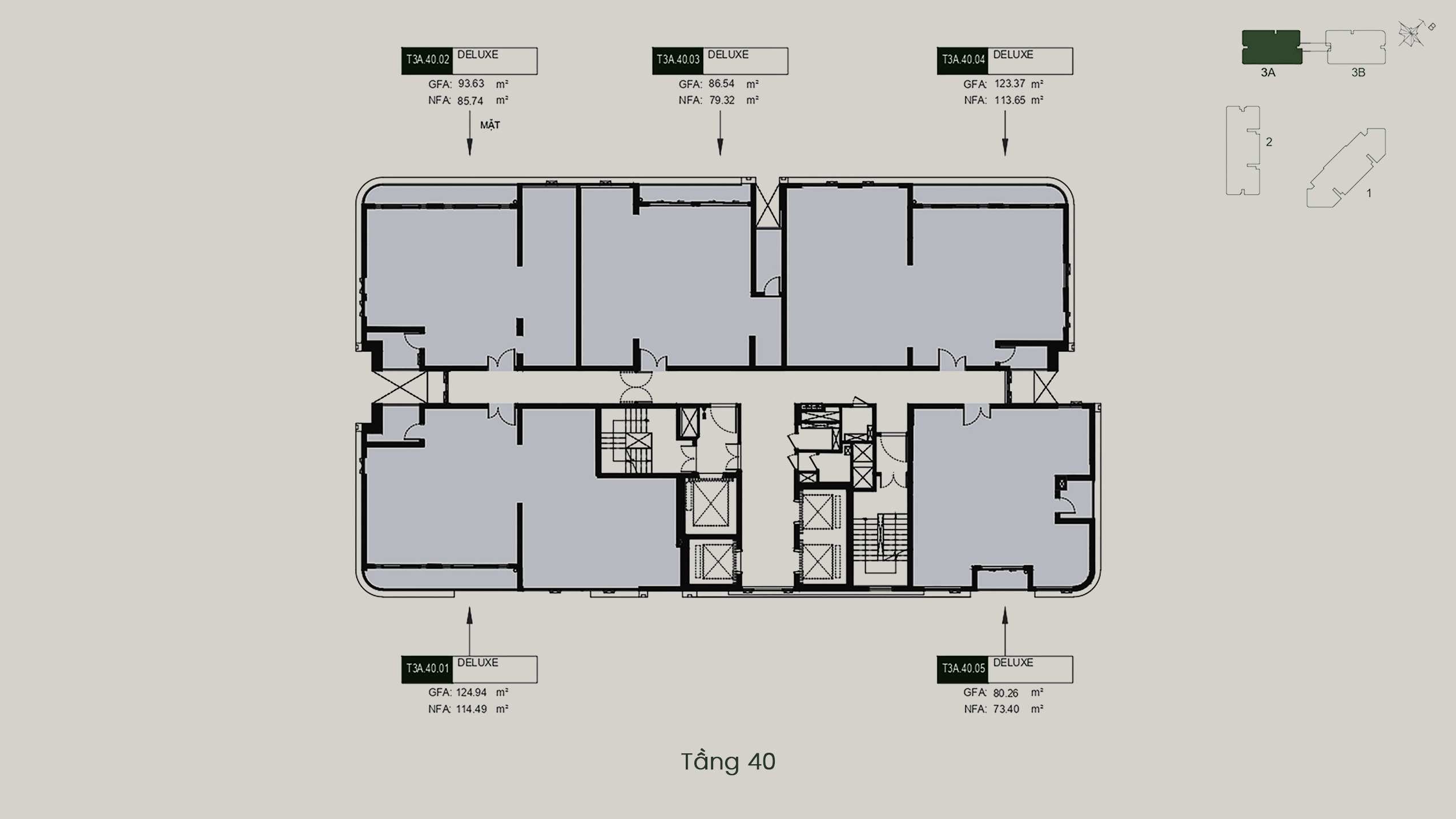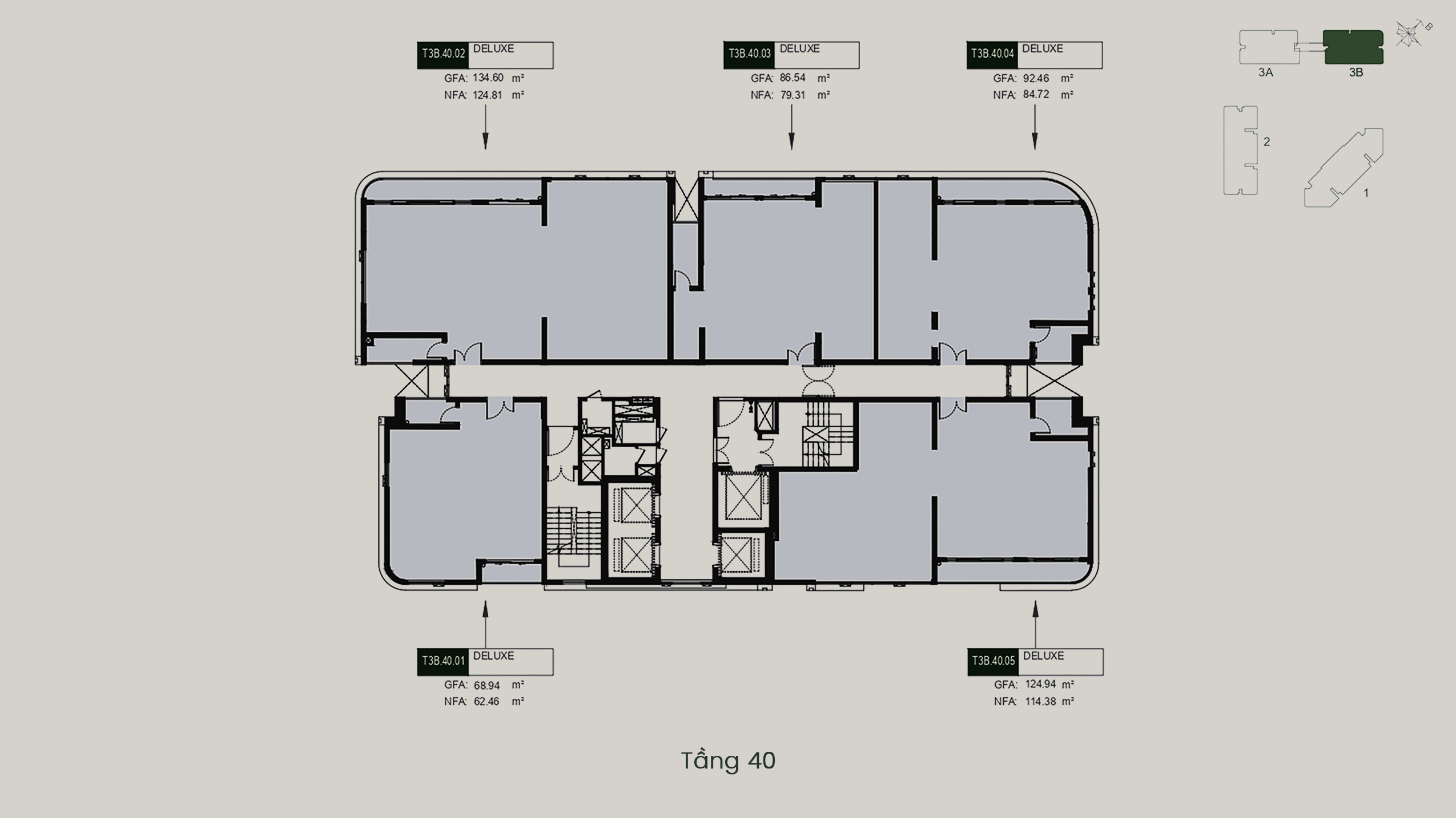 - T3A – T3B: 40 tầng