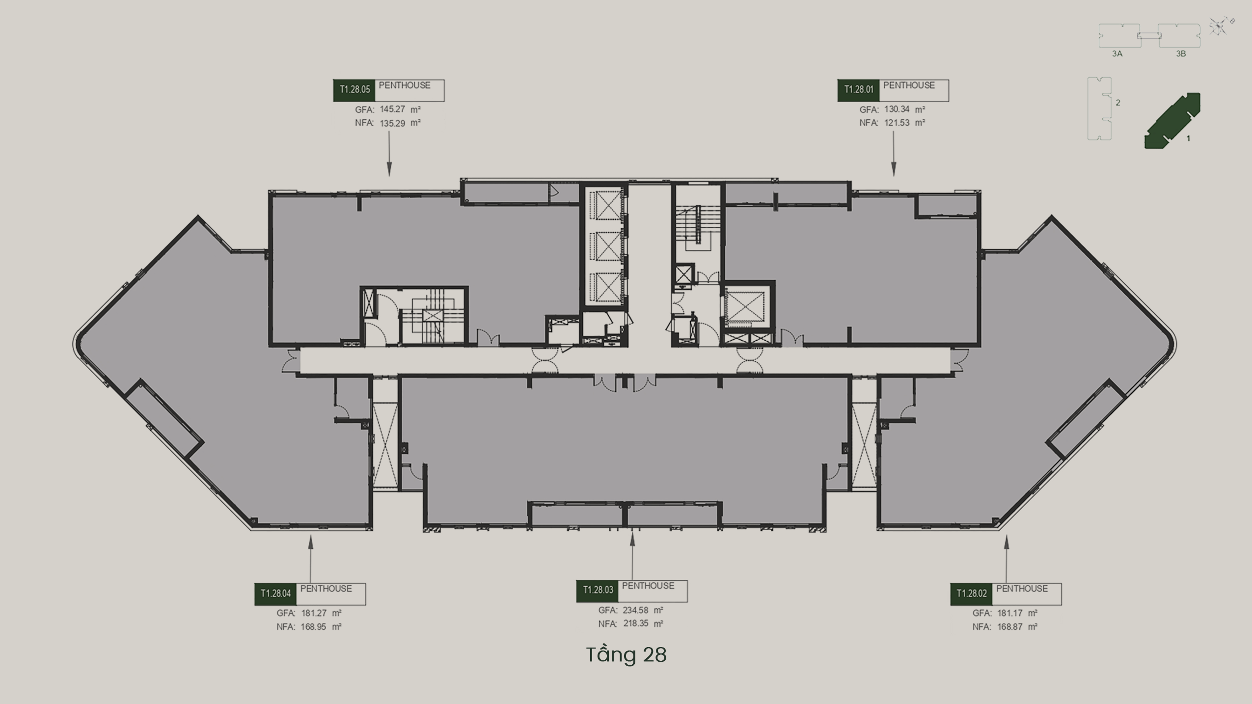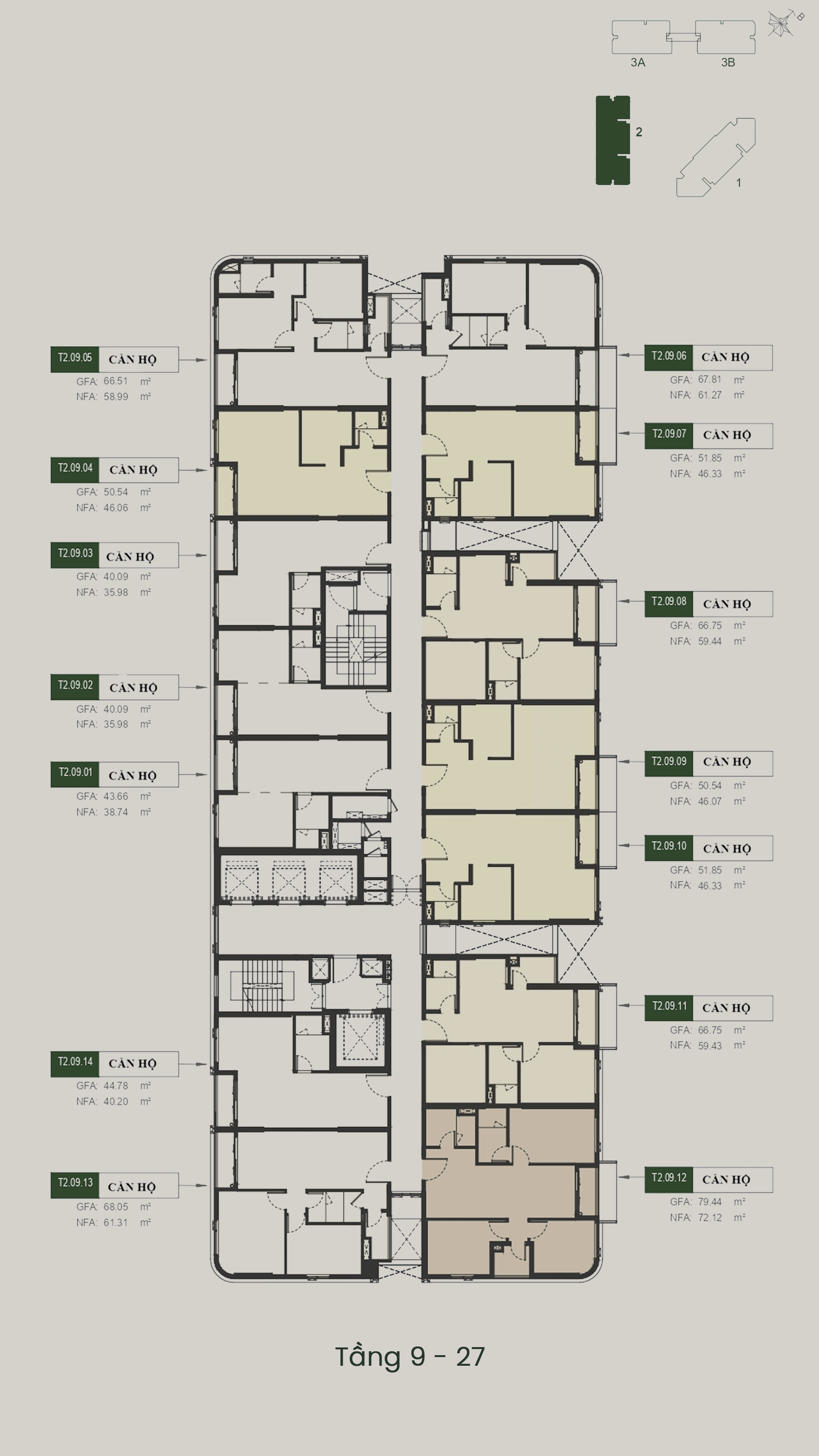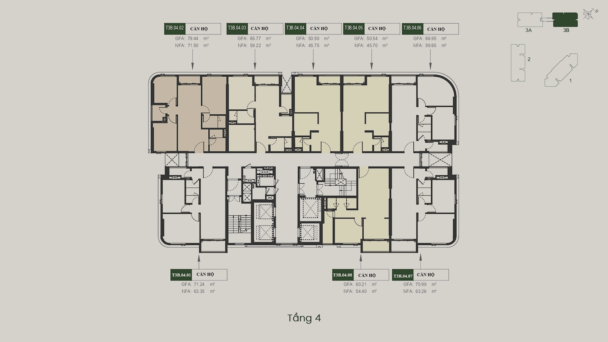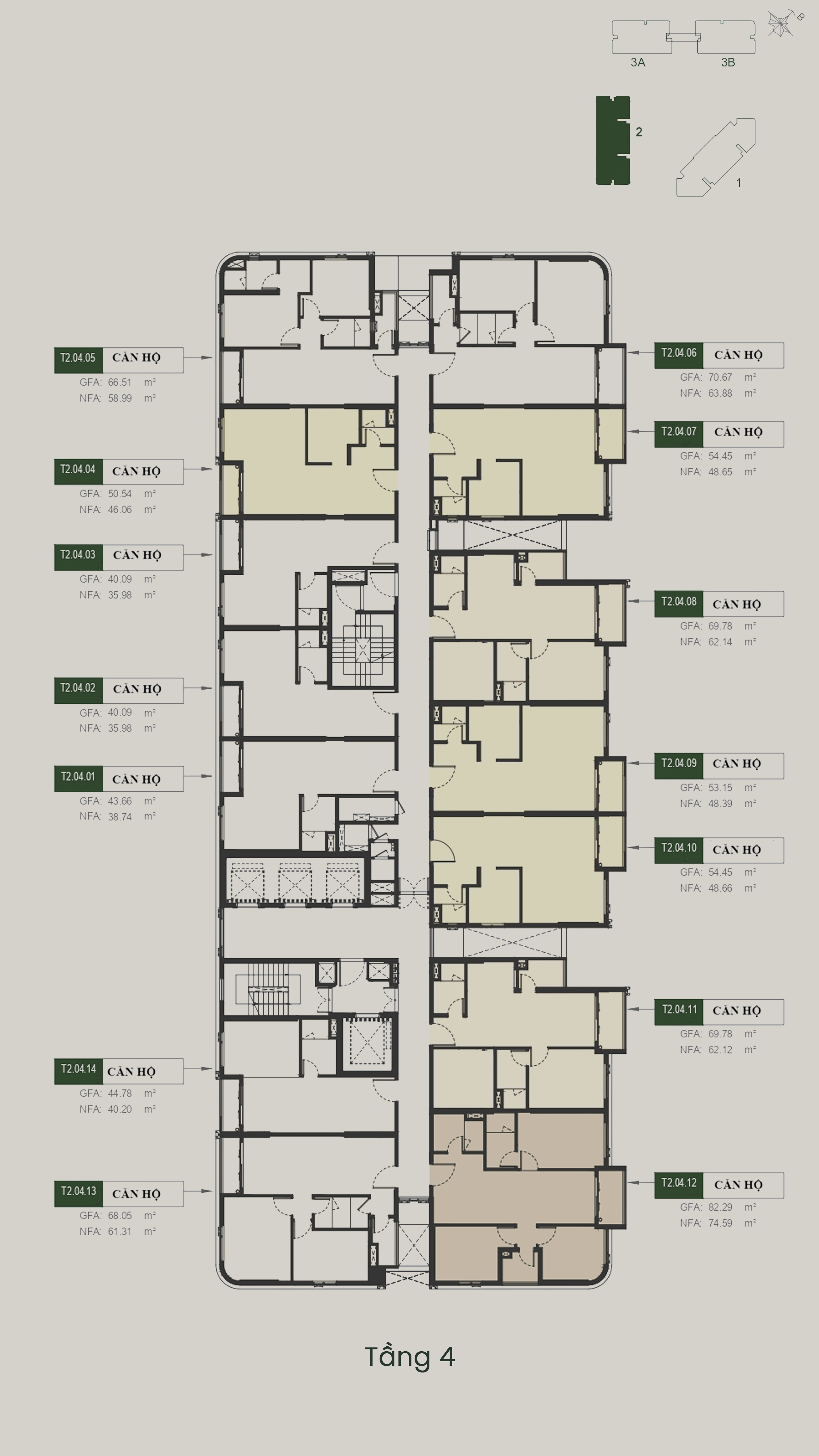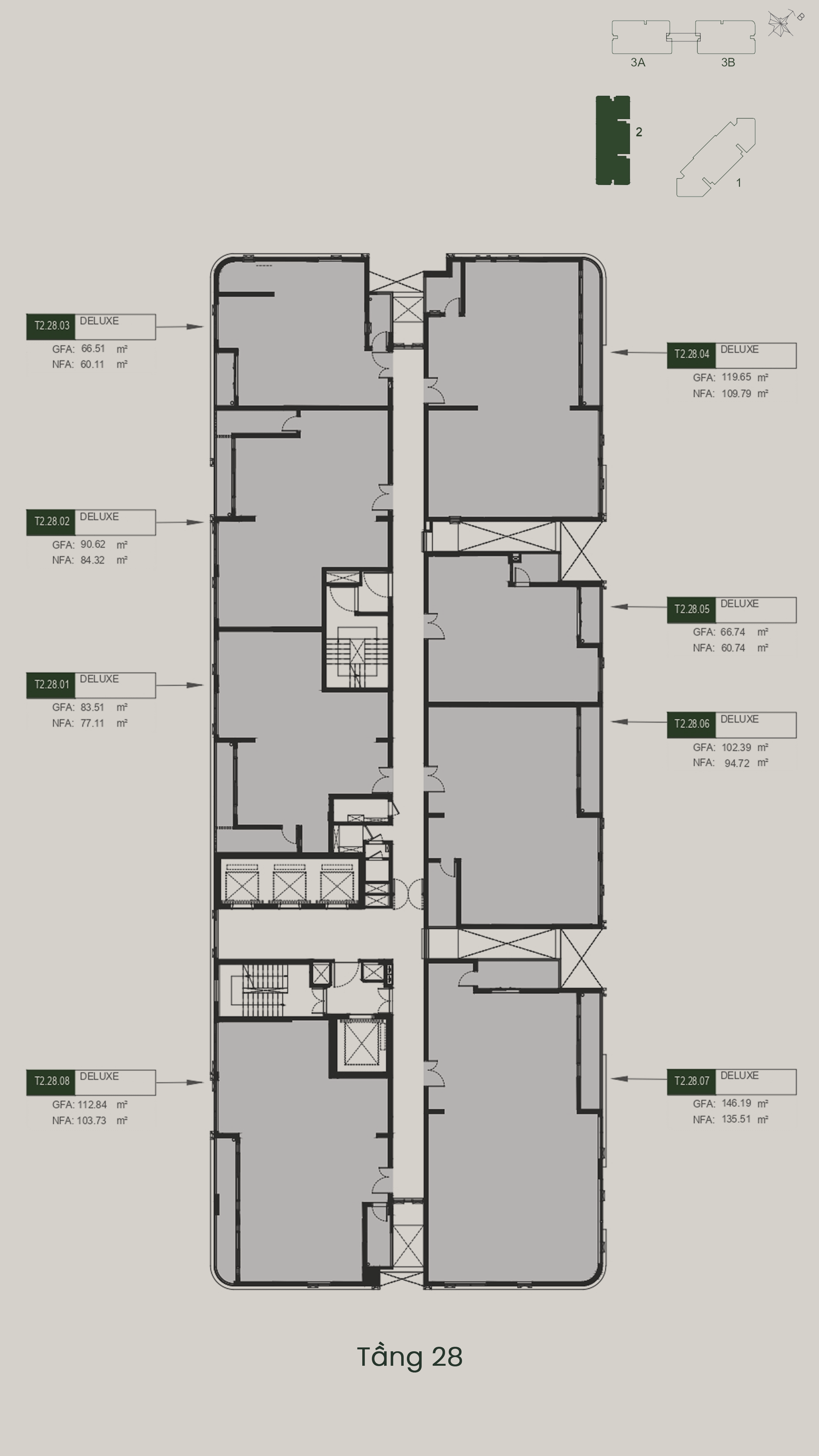 - T3A – T3B: 40 tầng