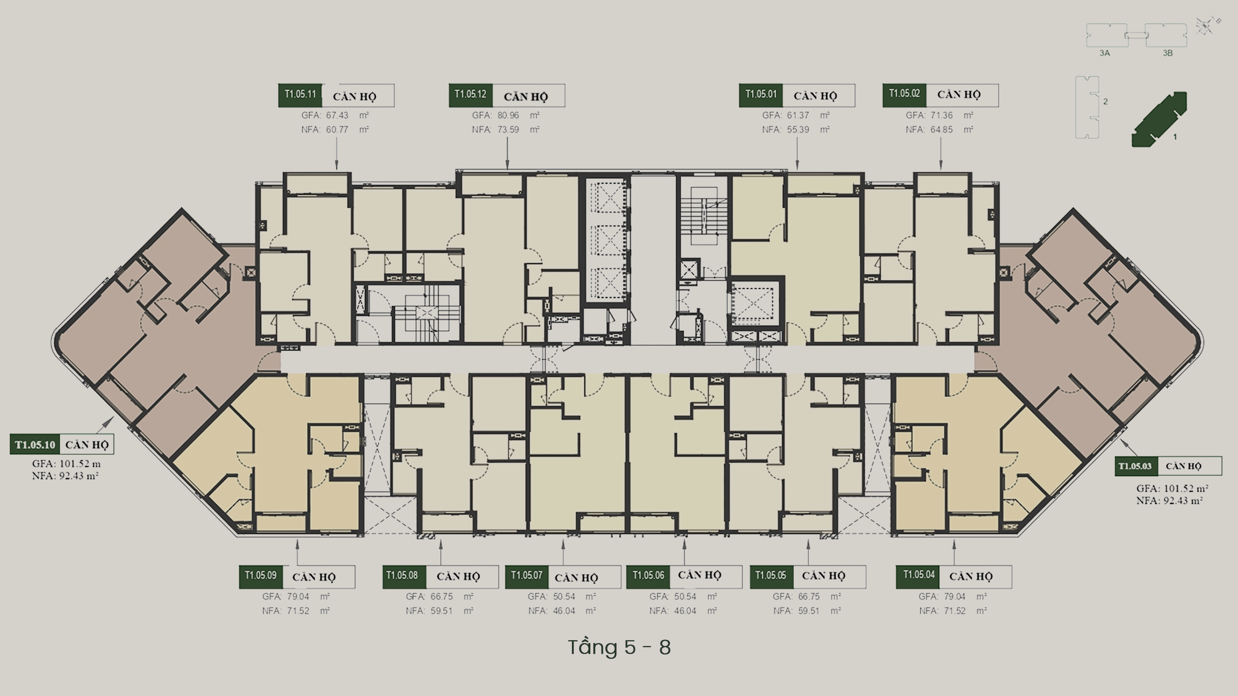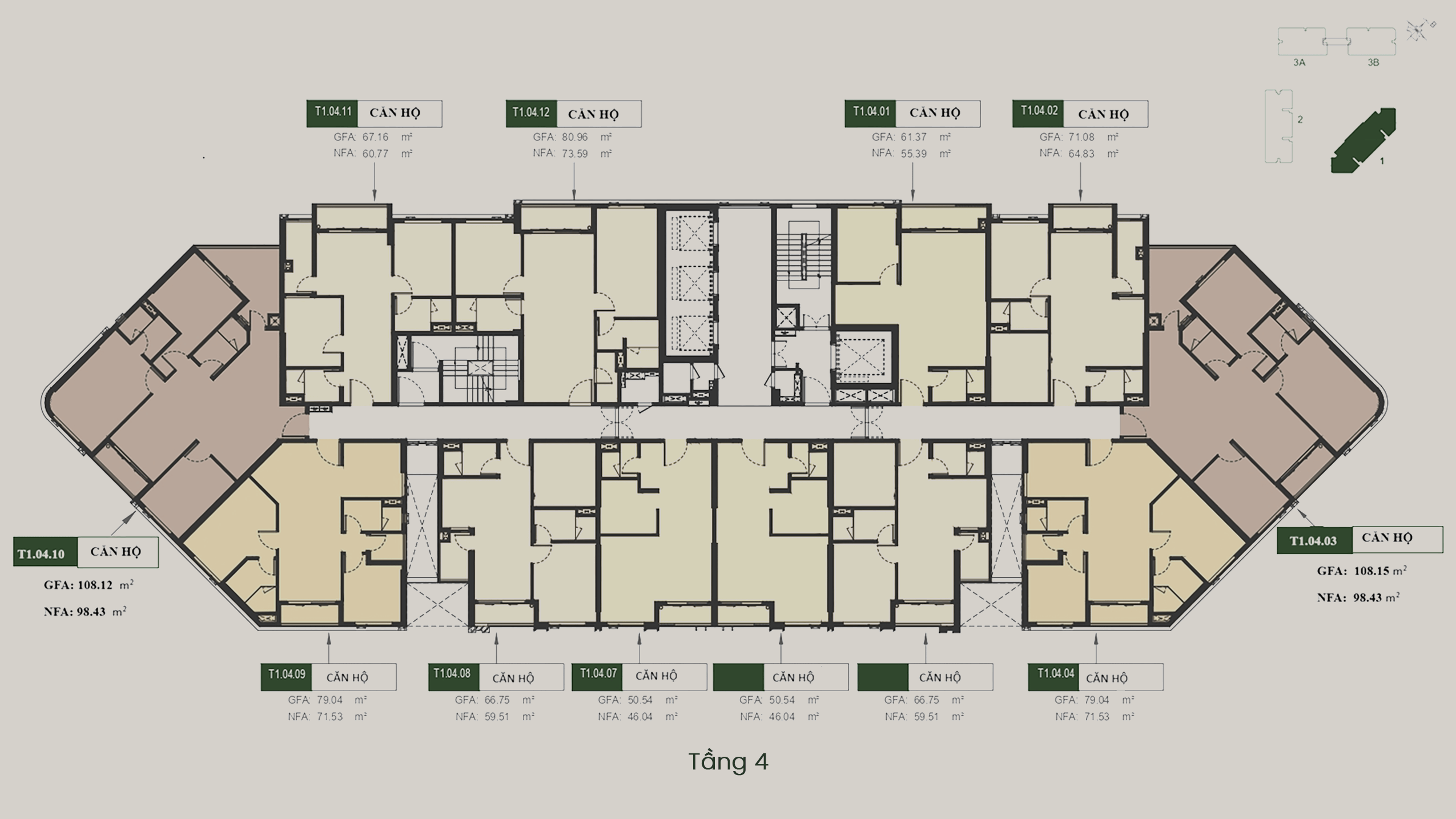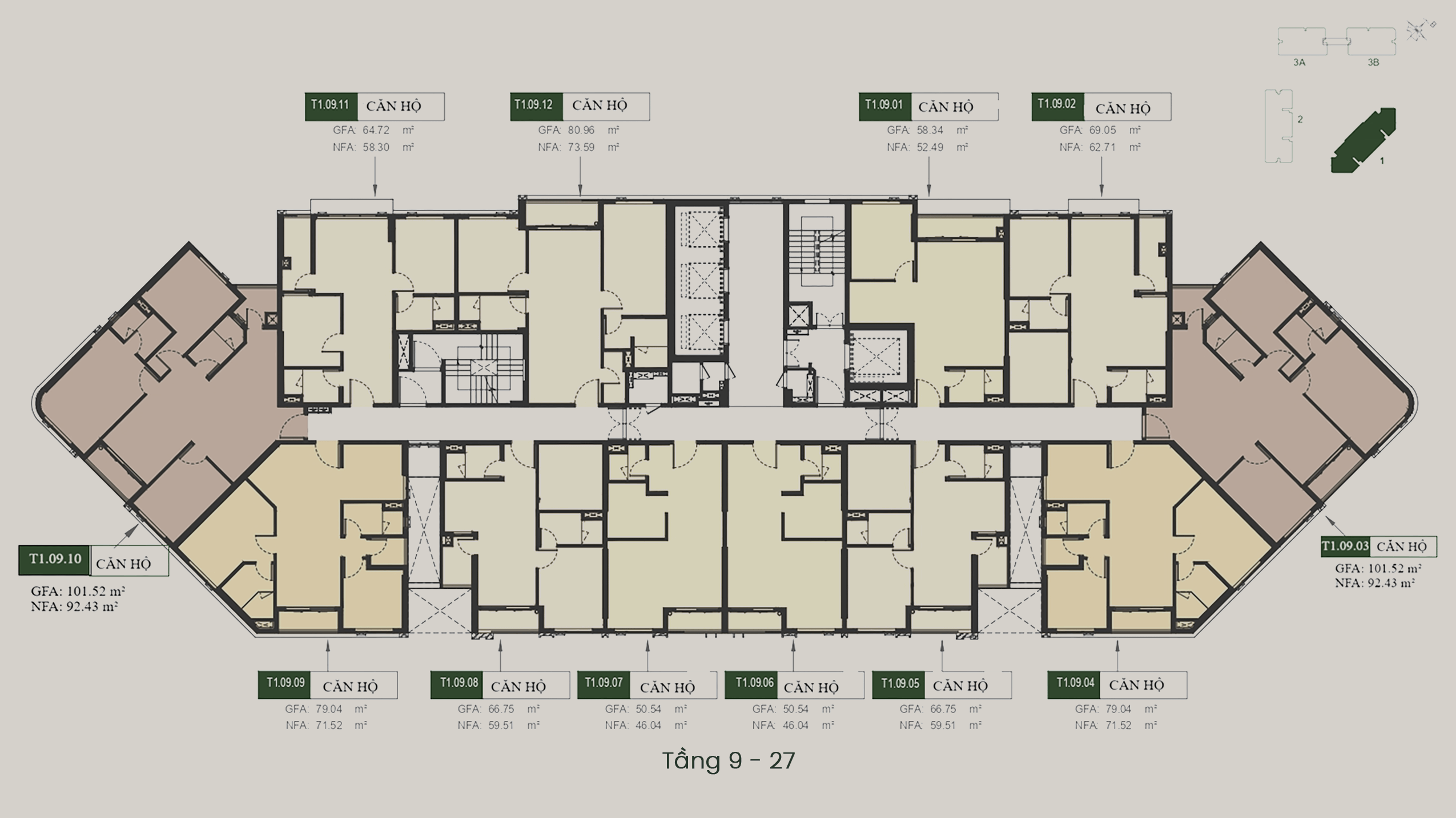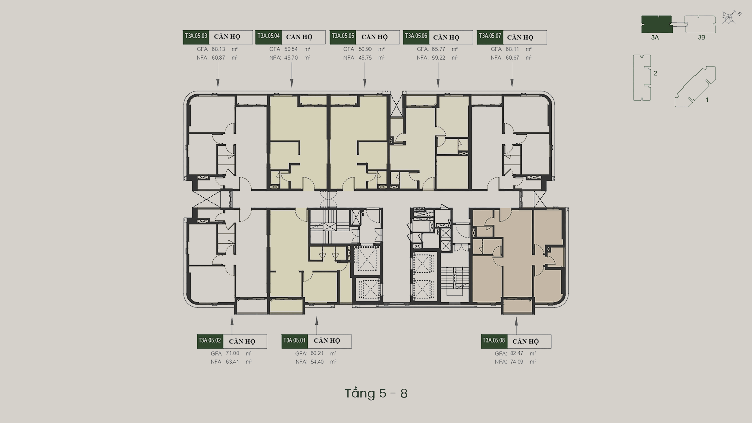 - T3A – T3B: 40 tầng