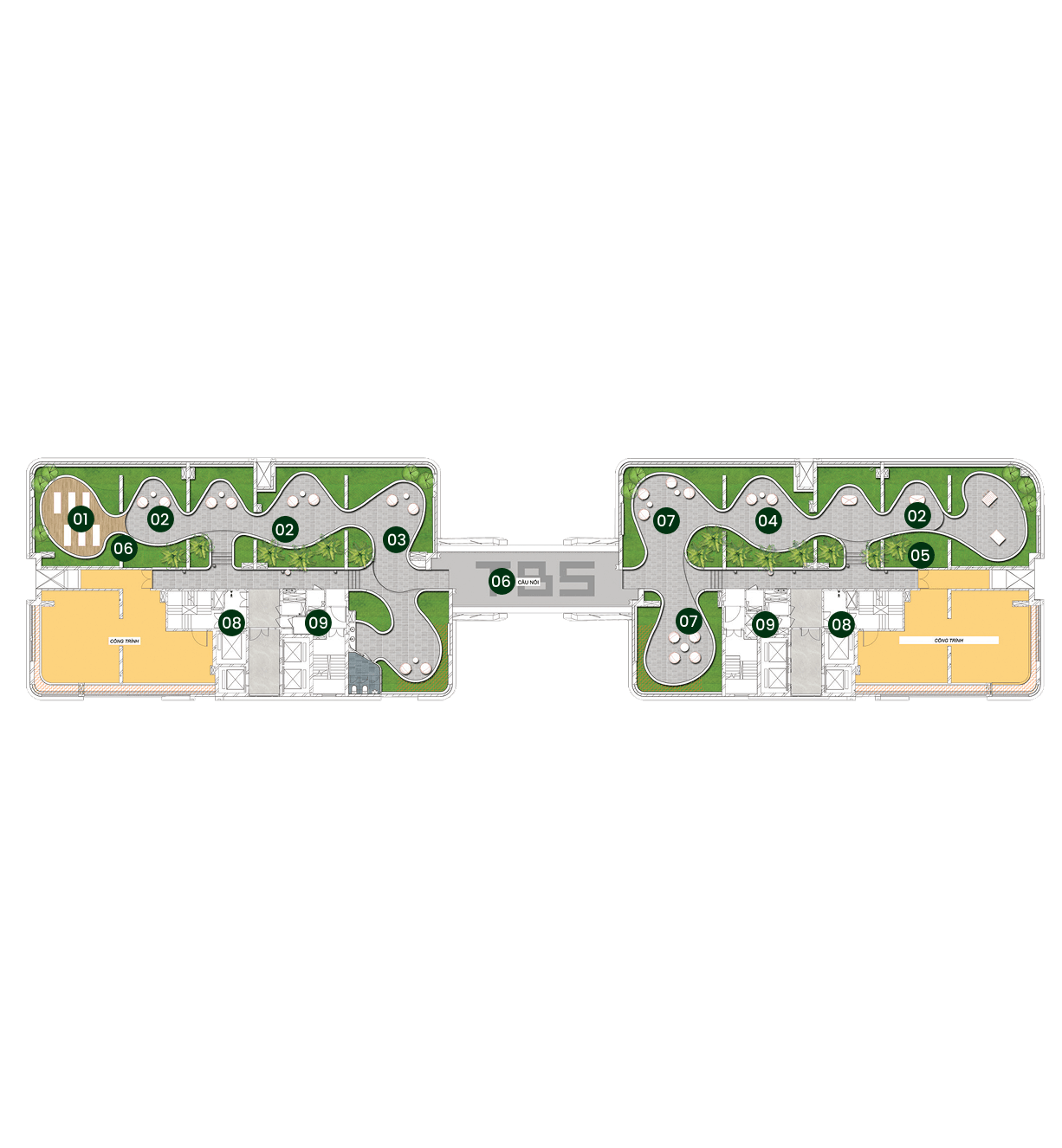 Không chỉ là bản vẽ hay phối cảnh, hệ thống cảnh quan và tiện ích tại tầng 3 đã hoàn thiện gần như toàn bộ, cho phép khách hàng trực tiếp trải nghiệm không gian sống tương lai. Căn hộ được hoàn thiện đồng bộ theo đúng tiêu chuẩn bàn giao, mang đến cảm nhận chân thực về chất lượng, ánh sáng, không gian và công năng sử dụng.